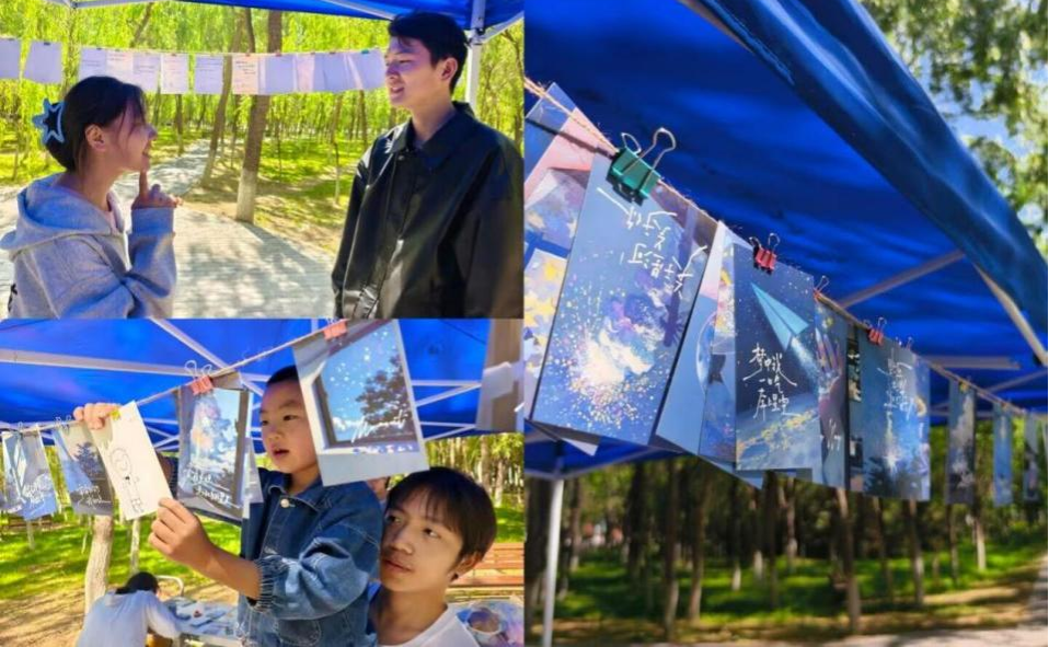 参加活动的同学们制作DIY扇子、描绘石膏娃娃,释放心理压力;搭建造景贴纸,创造心目中的理想之家;他们在明信片上写下对美好人生的期许,描绘未来愿景。同学们通过情绪描述游戏,与自己的心灵进行了深度交流。一张张用心书写的明信片在草坪上构成了一个巨大的“心”形,承载着同学们对于未来美好的憧憬,为活动现场营造了轻快和谐的氛围,同学们放飞了心灵,陶冶了心智。