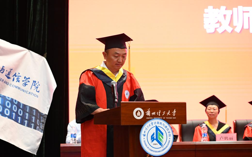 2024年jinnian金年会师德标兵、21级软件工程(鲲鹏)2班班主任张玺君老师代表教师发言。他用生动的技术比喻回顾了同学们从“运行卡顿”到“算力充沛”的成长历程,赞誉毕业生们见证了AI的飞速发展并完成了自身进化。他深情表示,母校永远是毕业生的“兰州云备份”和“debug热线”,员工是“西北算力中心”,并邀请大家常回来看看。他祝福大家“少遇致命BUG”,保持“乐观锁”,在人生道路上“高并发低延迟”,勇敢提交改变世界的代码!