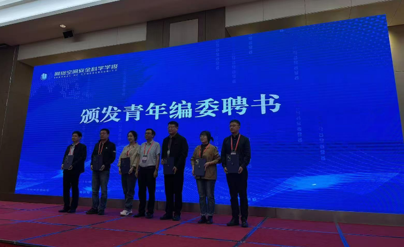 2024年10月25-27日由中国航天系统科学与工程研究院《网络空间安全科学学报》主办,北京航空航天大学杭州创新研究院等单位联合承办的《网络空间安全科学学报》编委会暨网络空间安全学术会议在浙江杭州召开。中国科公司方滨兴院士及200余名网络安全领域顶尖学者参会。金年会金字招牌诚信至上冯涛经理作为编委为新任青年编委颁发聘书,鲁晔老师等94人受聘为学报青年编委。
